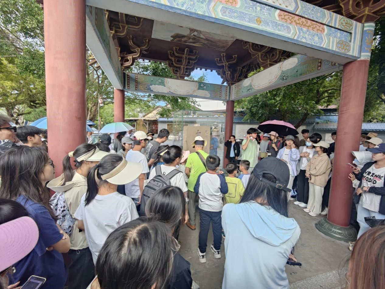 漫步东兴口岸,浓厚的异域风情扑面而来。越南的商品琳琅满目,街头巷尾随处可见忙碌的商贩和游客。大清国五号界碑静静伫立,见证了百年历史的风云变幻,成为中越两国友好往来的象征。顺着界碑往下,大部队来到大清国一号界碑跟前。在老师们的讲解下,学生们了解了民族英雄李受彤知县收复边境、跋山涉水立界碑的历史事迹,极大程度增强了学生们的民族情结和爱国情怀。