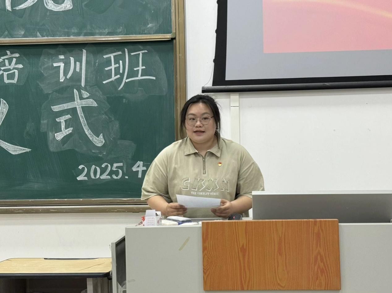 4月15日,中文成人网 于武鸣校区地源楼B107教室开展了2025年“青马工程”培训班开班仪式,学院党委副书记盛凯、学院团委书记蔡琪、学院青马工程培训班学员以及班、团学生代表参加开班仪式。