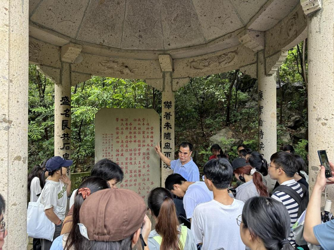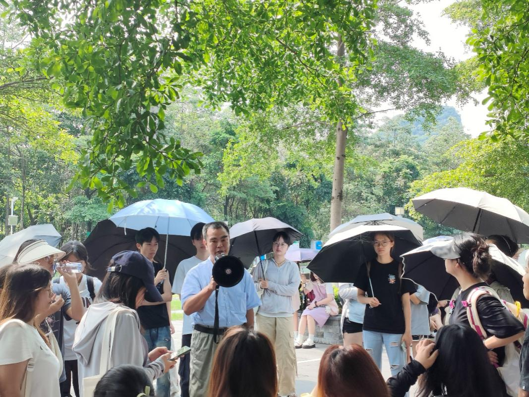 5月19日下午,同学们来到第一个实习点龙潭公园,地处柳州市区南部,是集喀斯特自然山水景观和中国南方少数民族风情文化为一体的大型风景游览区。在园区漫步的过程中,李忠标老师为同学们解读了柳宗元的《雷塘祷雨文》,并讲解了柳宗元与柳州的深厚联系,进一步加深了同学们对柳州文化的了解。