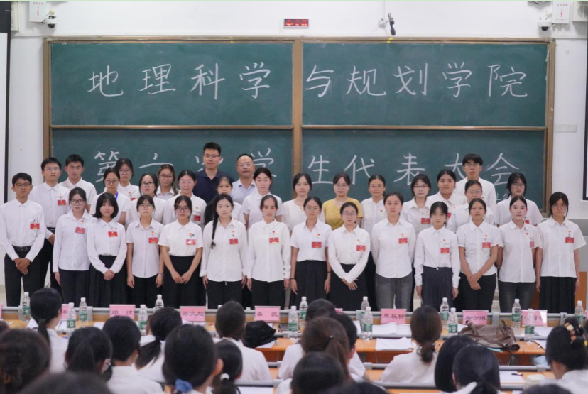 随着庄严的国歌声响起,地理学院第六次学生代表大会正式会议拉开了序幕。校学生会代表邓炫为大会致贺词,祝贺大会开幕并向筹备人员与代表致以问候,高度认可院学生会立足专业开展活动、助力校园建设和同学成长的成效,期待校院深化活动共办、资源共享等合作,祝愿大会选出新一届学生干部并取得圆满成功。