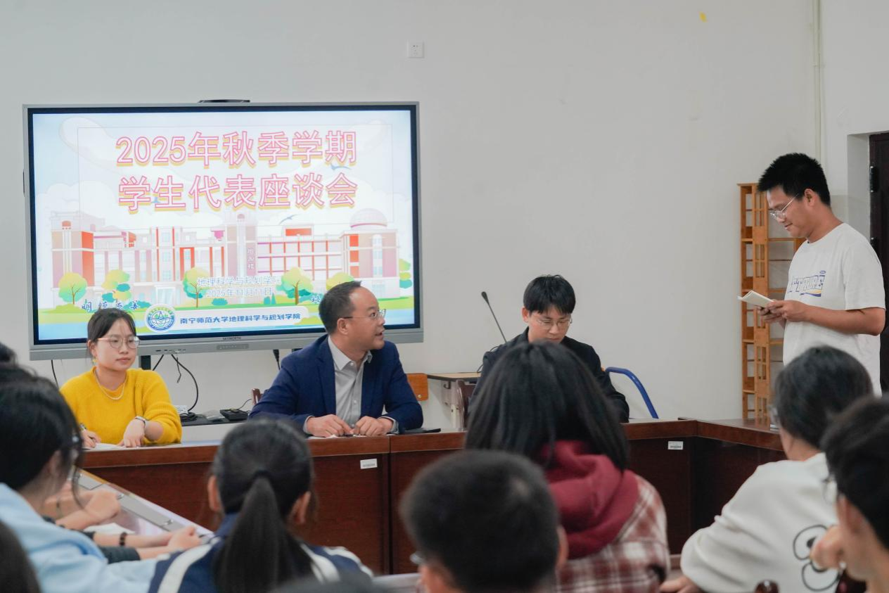 11月11日下午,中文成人网 在武鸣校区地源楼C401会议室召开2025年秋季学期学生代表座谈会。学院党委副书记盛凯,辅导员冯佳乐、唐含琪以及2025级各班班干代表参加会议。