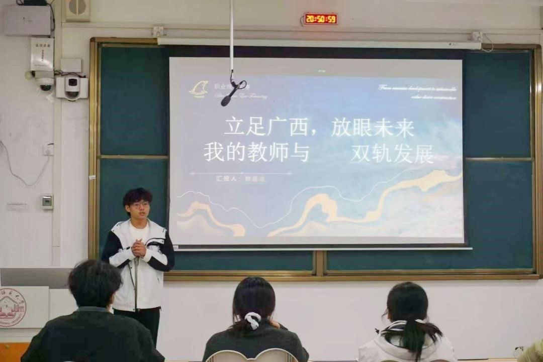 11月20日,中文成人网 于武鸣校区一号教学楼119教室顺利举行大学生职业生涯规划大赛复赛。此次复赛邀请学院辅导员覃辰柳、农宇鹏、李洁柳以及大学生科技创新协会主要负责人陈勃、活动部负责人梁倬铭担任评委。
