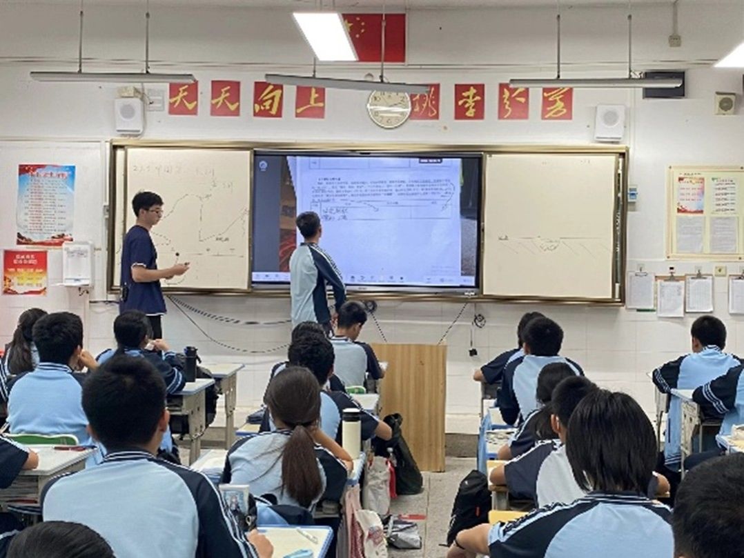 实习教师孙幸雨、方健依次登台展示教学成果:孙幸雨以《海陆变迁》为授课内容,围绕板块运动、地形演化等核心知识点展开教学,课堂上注重知识准确性的把控,能及时纠正学生关于“太平洋板块”的表述错误,展现了扎实的学科基础;方健则以《中国第二长河——黄河》作为授课内容,从黄河的流域概况到治理开发,层层递进的进行讲解,其设计的学生活动亮点突出,充分体现了“以学生为中心”的课堂理念。