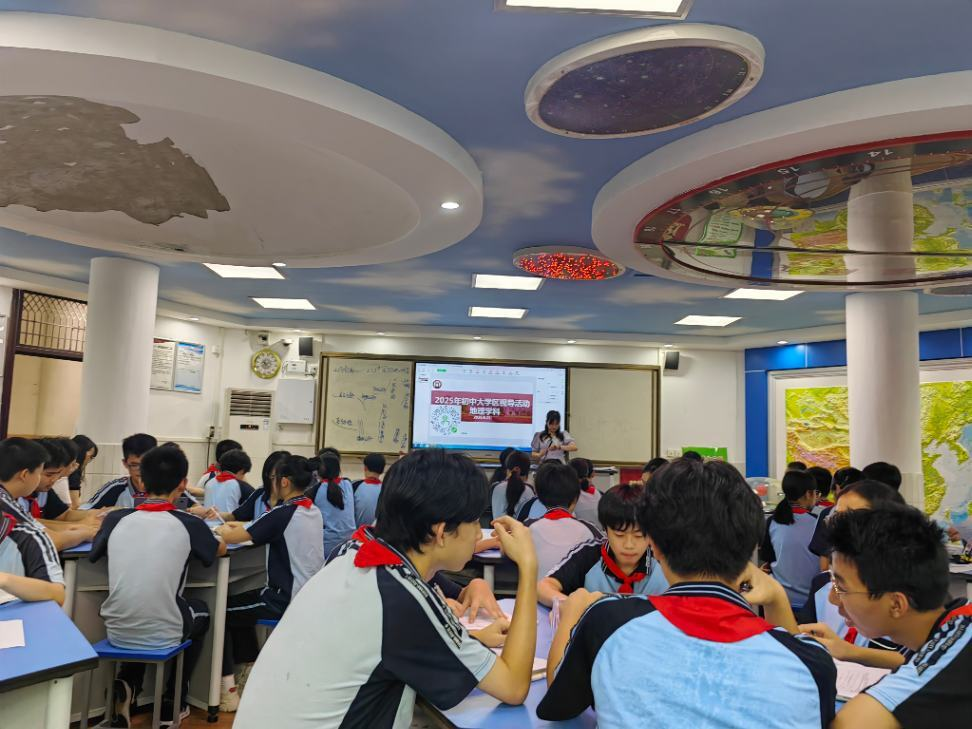 深耕教研实践,筑牢教学功底。实习期间,实习生参与南宁二中初中大学区视导精品课与教育质量提升座谈会,近距离感受优质课堂的教学设计巧思与师生互动节奏,聆听教育同行关于学情把控、课堂效率提升的深度分享,从而清晰把握初中地理教学的核心方向与优化思路。