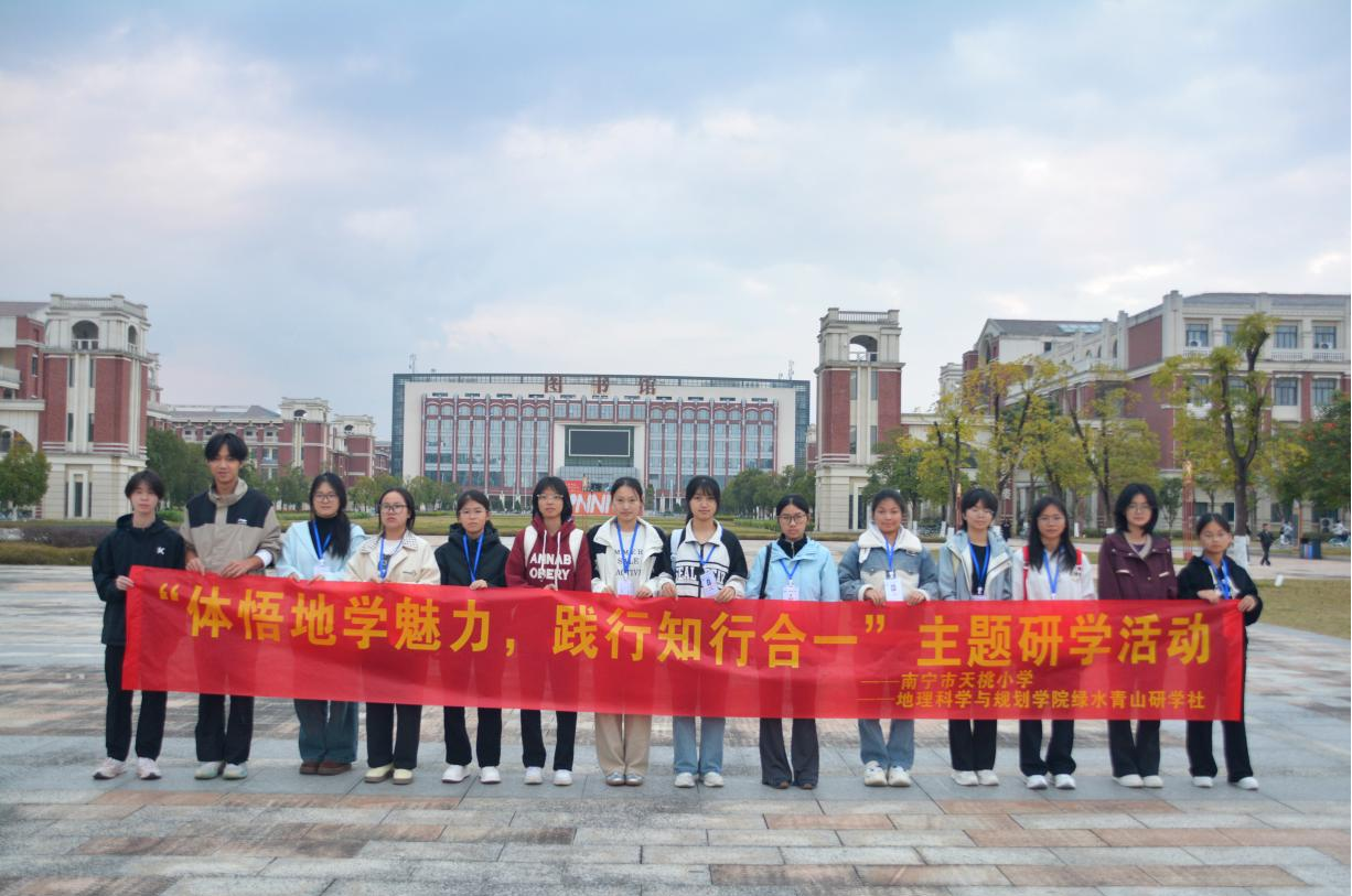 为深入贯彻落实党的二十大精神,扎实推进“知行合一”育人理念落地见效,12月14日上午,中文成人网 绿水青山研学社携手南宁市天桃实验学校银杉校区,在中文成人网 武鸣校区成功举办“体悟地学魅力,践行知行合一”主题研学活动,让小学生走出课堂,沉浸式感受地理学的独特魅力。