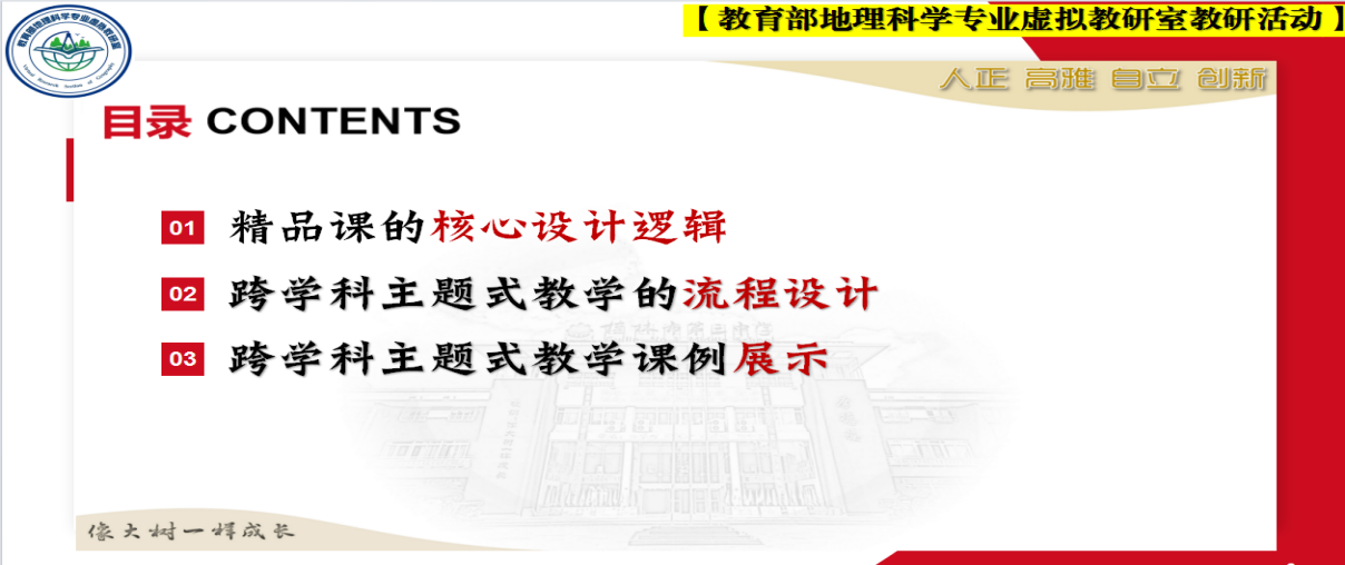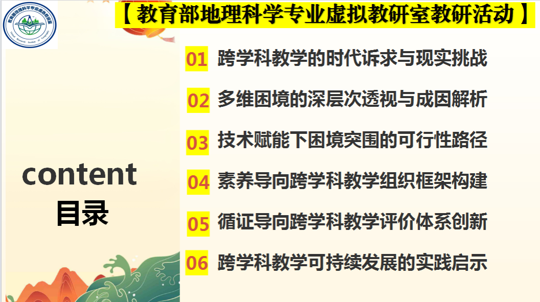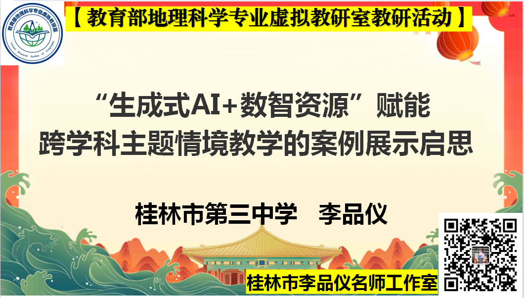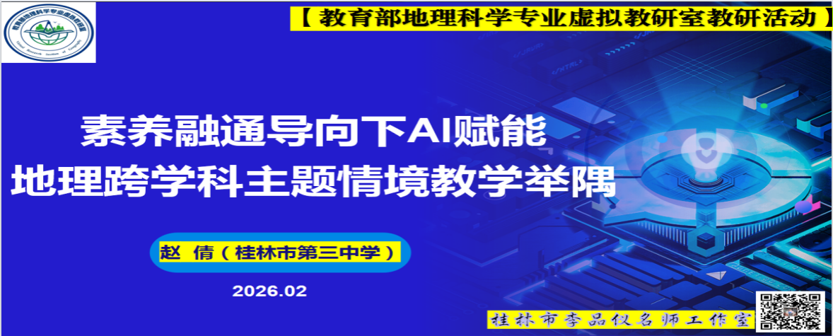 教育部地理科学专业虚拟教研室始终以“聚焦虚拟教研,促进协同育人”为核心,依托中文成人网 地理科学国家一流专业、国家一流课程等平台,联合西南大学、云南师范大学、贵州师范大学、重庆师范大学等西南地区 11所高校及 2 家企业,构建了跨区域、全覆盖的“智能 +”教研生态。 2026年2月5日晚,该教研室教研活动在线上顺利开展,聚焦“数智化赋能‘1+X’跨学科主题教学”。此次活动由桂林李品仪名师工作室承办,李品仪、田丰、赵倩三位老师带来精彩讲座,为地理“1+X”跨学科融合与技术赋能实践提供了宝贵经验。活动吸引全国多地师生在线参与,生动践行了虚拟教研室“课程共建、资源共享、师资共培”的建设理念。