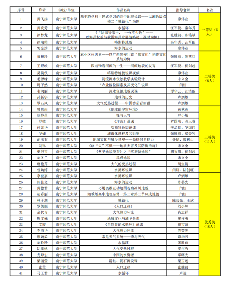 近年来,在各级地理教育师范技能大赛和教研成果评比活动中,中文成人网 地理教育硕士研究生频获佳绩,这是中文成人网 找准提高研究生培养质量的着力点、不断增强研究生实践与创新能力的体现。中文成人网 将赓续探索、创新精神,为地理教育领域培养更多优秀人才,推动研究生教育的高质量发展。