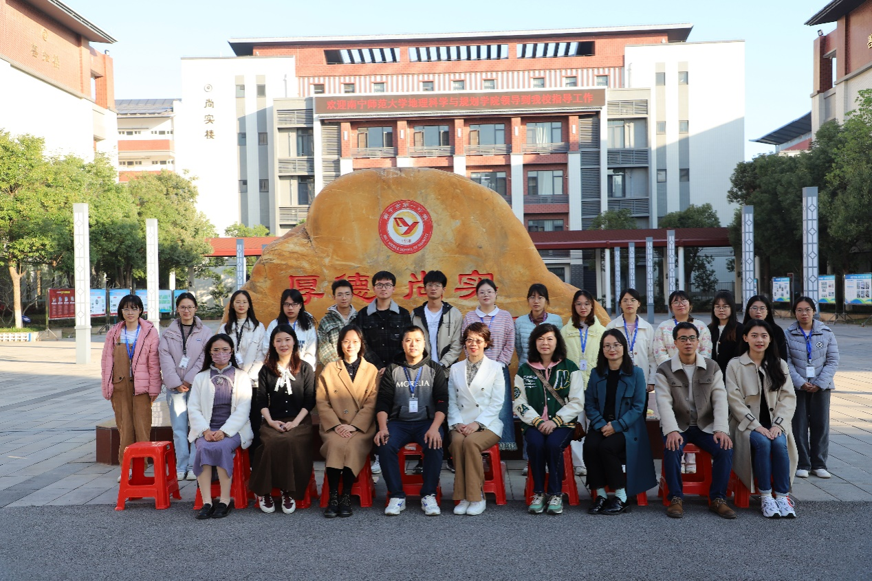 会上,陈兆坚主任首先对廖伟业副教授、韦晨副主任一行的到来表示热烈欢迎。陈主任做简单实习总结,对实习生们的表现给予充分肯定。紧接着廖伟业副教授发言,廖老师对南宁一中这段时间以来对实习生们做的细致安排以及关心表示衷心的感谢,又与何雪莲老师、莫焕群老师等就实习汇报课的备课、磨课等问题进行深入探讨。总结会结束后,与会人员进行合影留念。