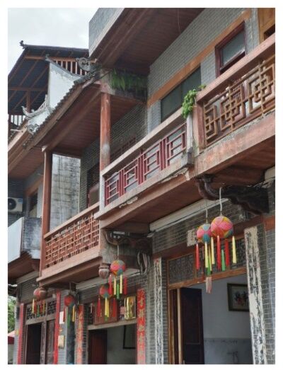 第二站我们来到了山水如画,人文古迹众多的旧州老街。一提到旧州,就能回忆起那挂满壮乡绣球的街道和小巷。壮乡绣球,是广西壮族特有的民俗,是壮族青年男女间的定情之物和吉祥之物。也正如所见,旧州被誉为中国的“绣球之乡”,其制作绣球的历史已有千年,是全国闻名的绣球之乡。据说这里的男女老少都会制作绣球,绣品图案精美,手工细腻,让人爱不释手。在老师们的带领下,同学们与当地壮族阿姐进行了进一步的交流,更加近距离的观察到了绣球的制作流程,我们了解到手工缝制一个绣球需要耗费整整两天的时间,而且越是小巧的绣球制作时间更长。绣球缝制的一针一线蕴含了壮族人民内敛又浓厚的情感,正成为传递爱情、亲情和友情的民族文化使者,也是广西走向世界的文化载体。