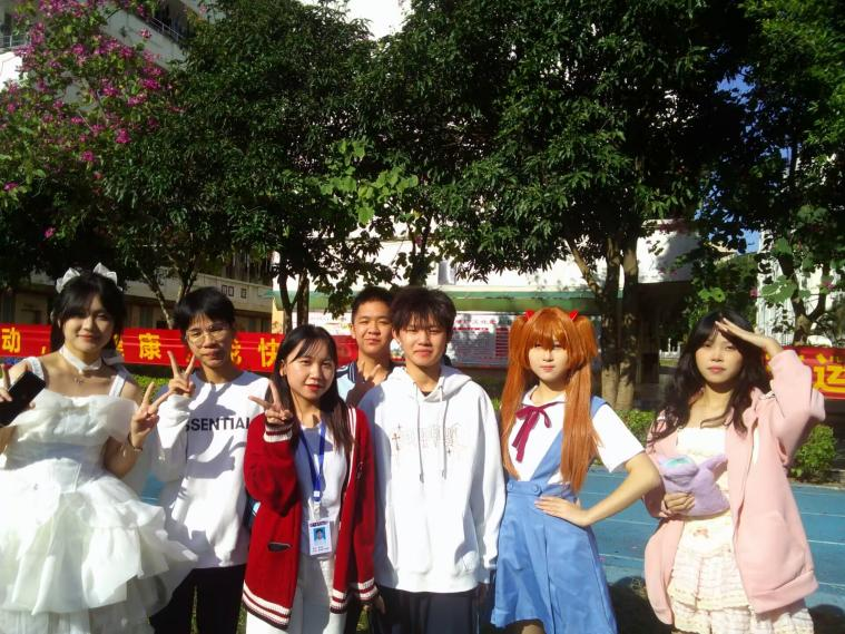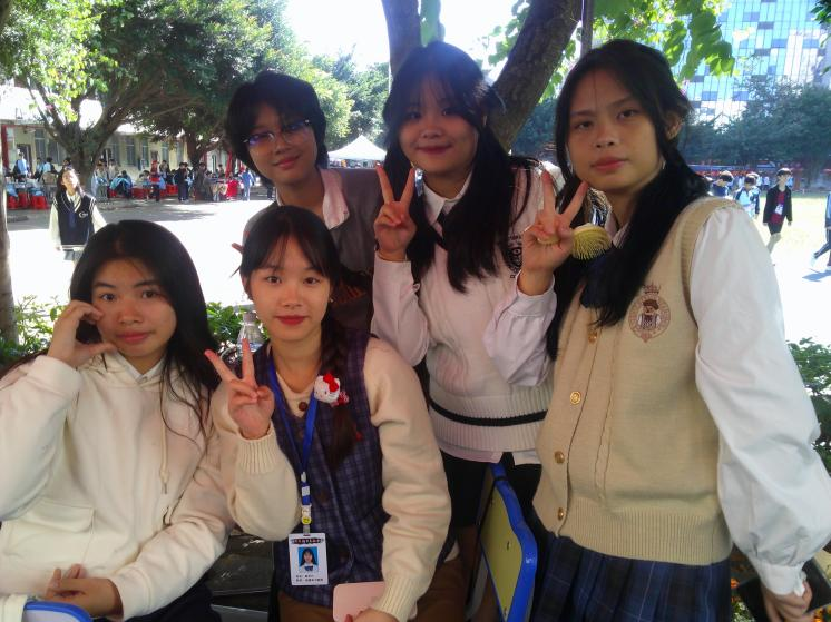(实习老师莫艺竹、梁丽珠在校运会期间与学生的合照)