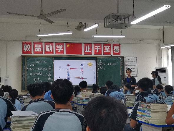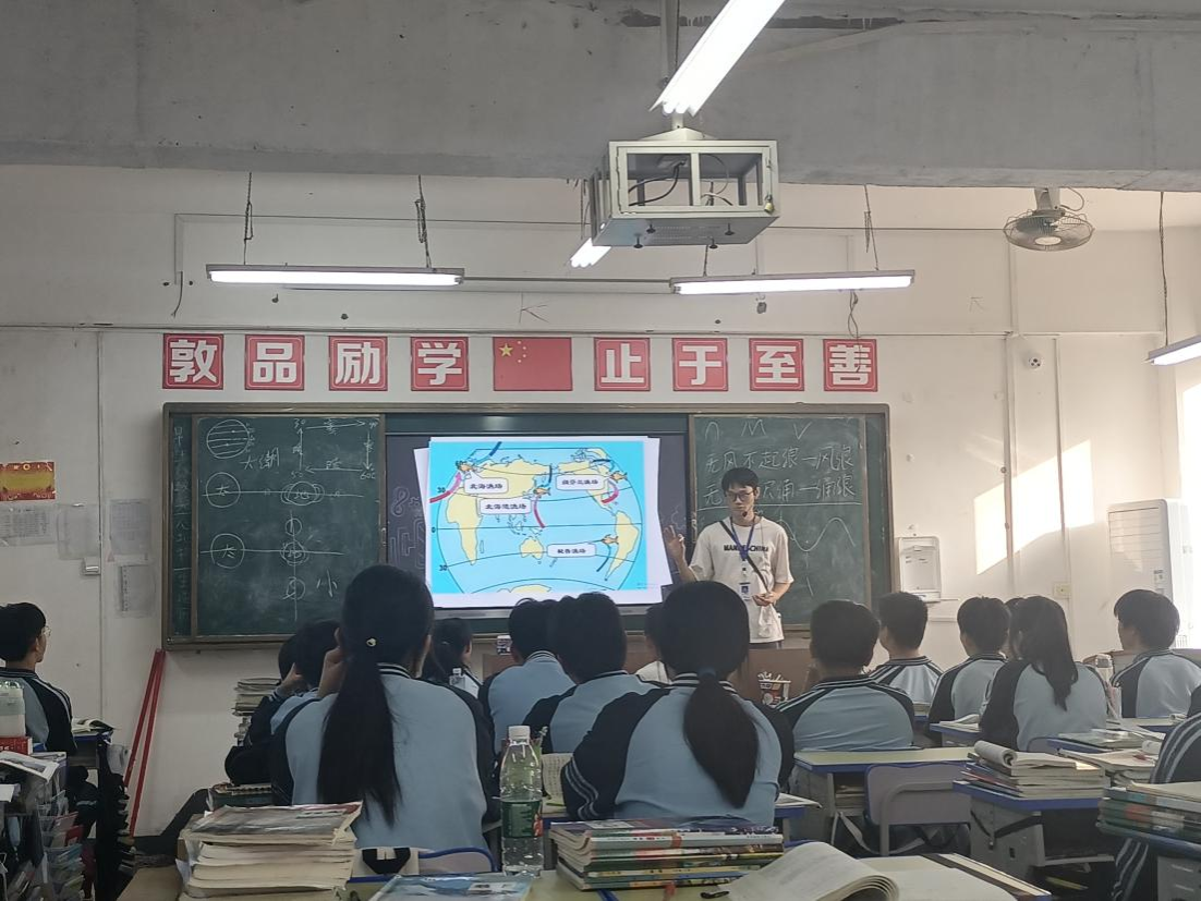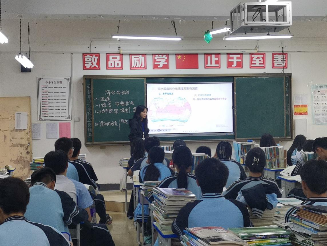 (实习老师韦丽萍在讲授《海水的性质和运动》)