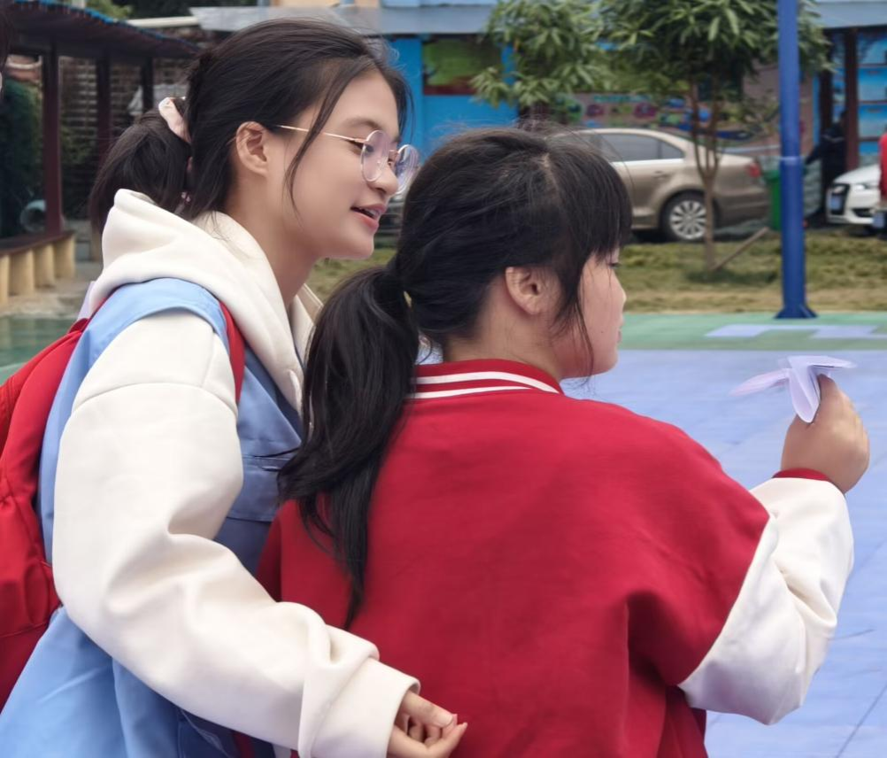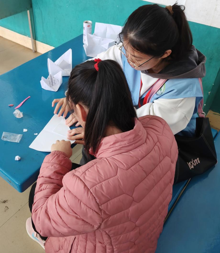 活动伊始,志愿者前往特教学校食堂里,为小朋友们准备游戏活动所需的道具。每名志愿者陪伴两位小朋友一起参与活动,一些小朋友在志愿者的引导下将胶泥捏成了许多种形状,有可爱的小动物,有美丽的花草,有可口的美食。另一边,志愿者帮助小朋友们用积木搭建出各式各样的房子、城堡。志愿者手把手教小朋友们叠纸飞机,他们把各自的心愿写在纸上,叠成纸飞机,在操场上将自己的心里的愿望放飞到无暇的天空。活动中,志愿者们和小朋友们相处和谐融洽,玩得不亦乐乎。