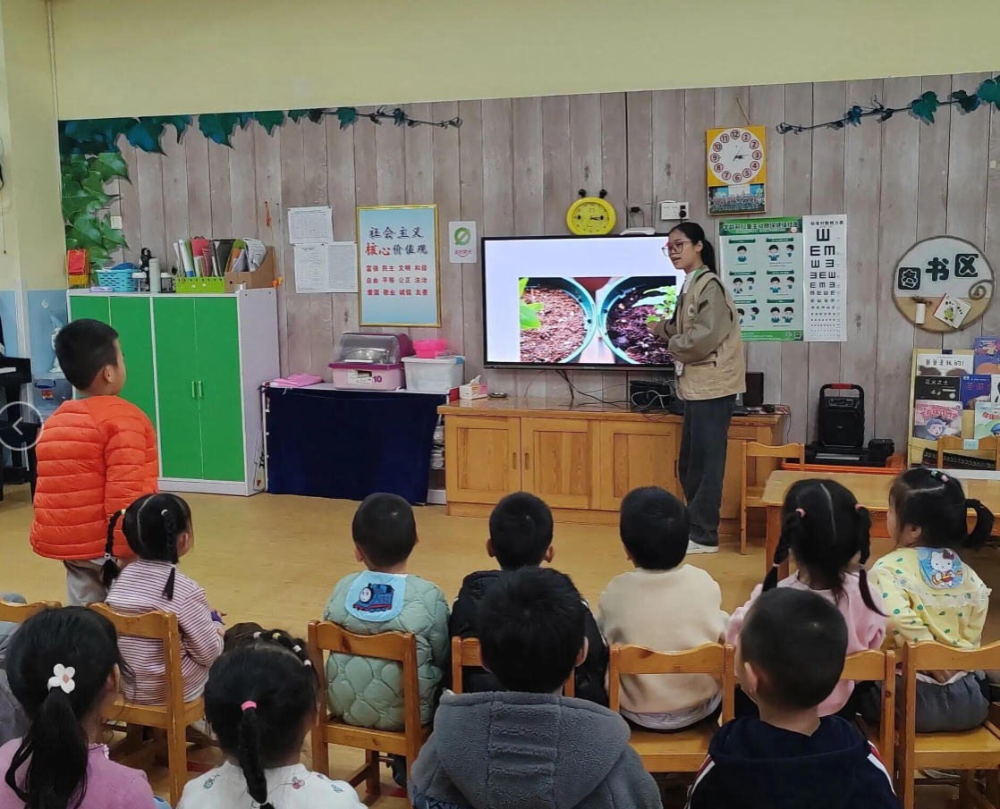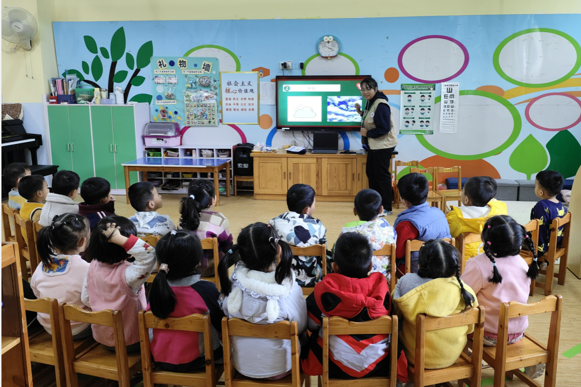 活动伊始,支教队员在保育老师的带领下分别前往相应的支教班级。在支教活动中,支教队员们通过图片、视频等多种形式,向小朋友们介绍以“多变的天气和土壤的奥秘”为主题的知识小课堂。在课堂上,小朋友们不仅学到了科学知识,同时认识到自然环境对人类生活的重要性,懂得了珍惜资源、保护环境的道理。小朋友们听得津津有味,积极参与互动。最后,支教活动在小朋友们的欢声笑语中圆满结束。