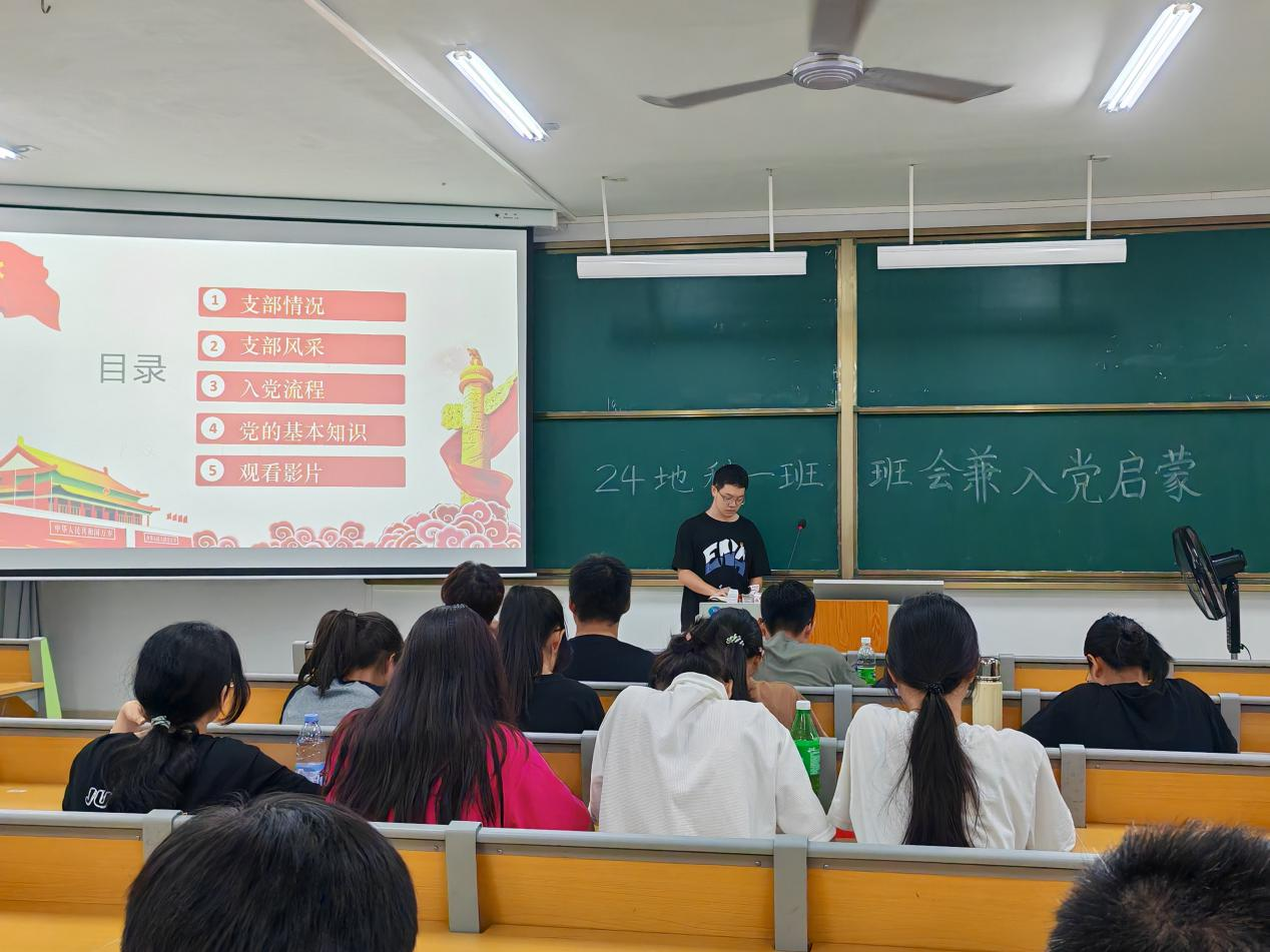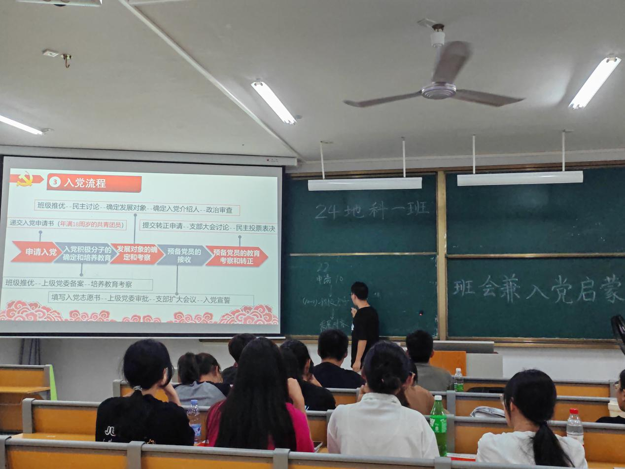 为加强新生思想政治教育,引导新生积极向党组织靠拢,2024年9月20日,中文成人网 24地科类一班于武鸣校区实验楼2-A202开展入党启蒙教育活动。本次会议活动由班级驻党李佳臻同志、韦涵升同志共同主持,全体同学参与。