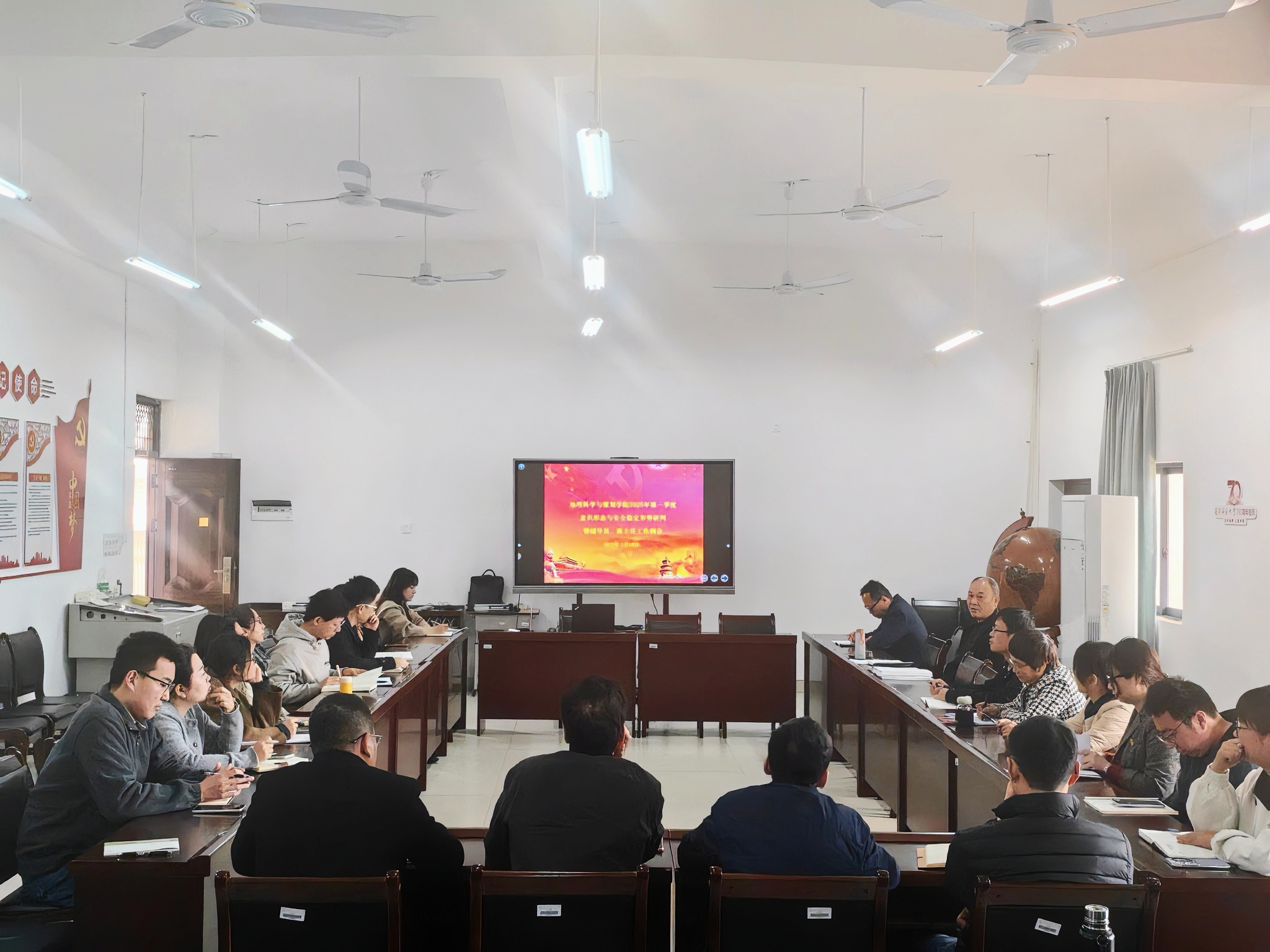 2025年3月19日,中文成人网 在地源楼C401室召开2025年第一季度意识形态与安全稳定工作会议,学院党委委员、辅导员及及班主任参加会议。会议由学院党委书记严志强主持。