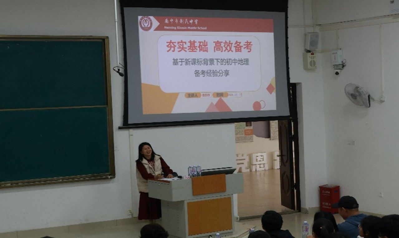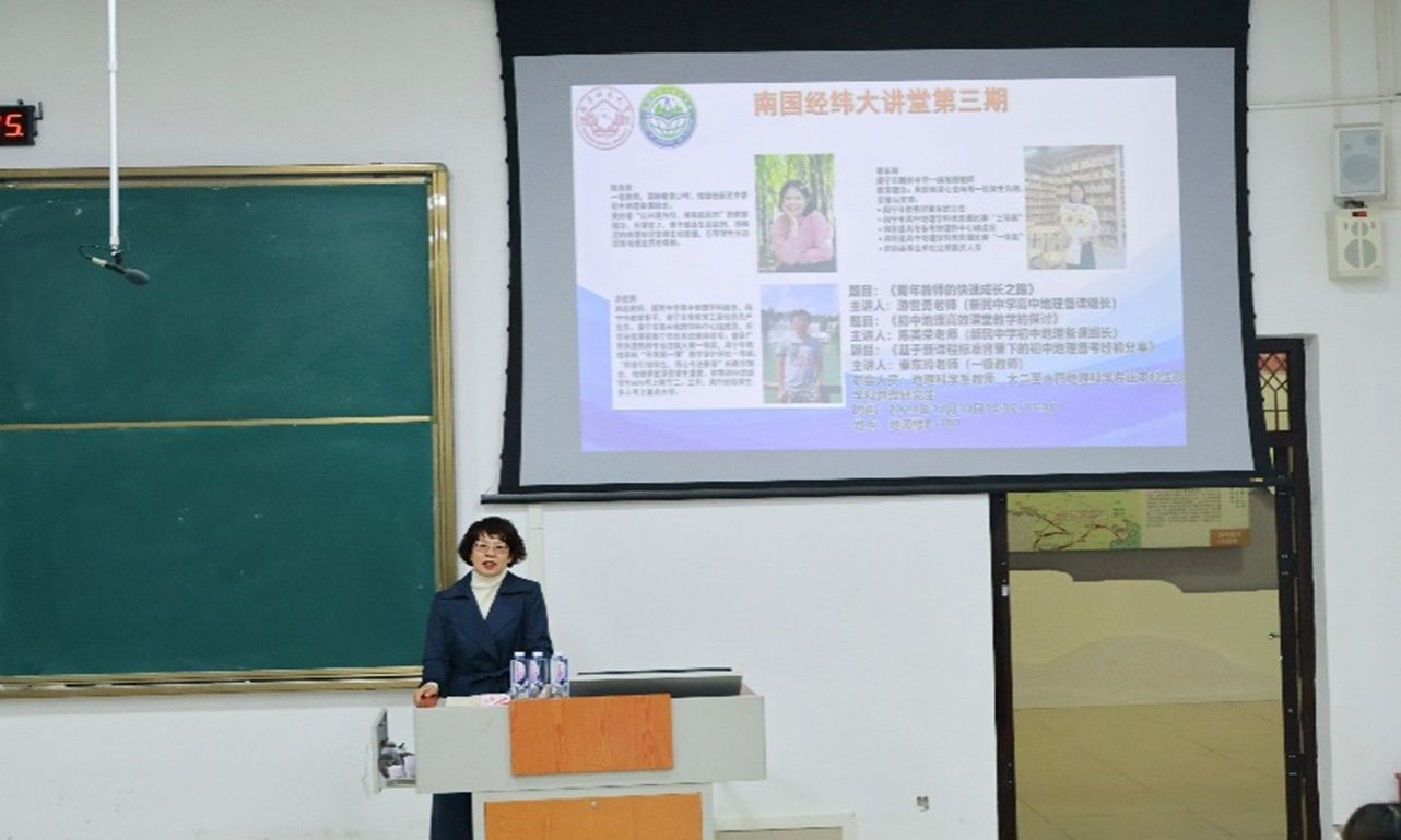 2024年12月10日,中文成人网 邀请了南宁市新民中学初中地理备课组长陈美荣、一级教师秦东玲、高中地理备课组长游世勇老师在武鸣校区地源楼B-107教室开展了“初中地理高效课堂教学的探究”、“基于新课程标准背景下的初中地理备考经验分享”与“青年教师的快速成长之路”的报告讲座。此次报告会由地理科学系主任宋立全和副主任韦晨策划、宋立全主持,地理科学系教师、大二至大四地理科学专业本科生及学科地理硕士研究生参会。