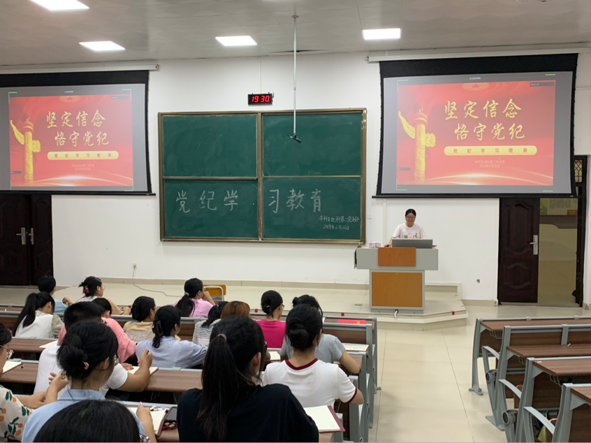 6月26日,中文成人网 本科生地科第二党支部在武鸣校区地源楼B107教室举行党纪学习教育第二次集中学习,党支部全体党员参会。