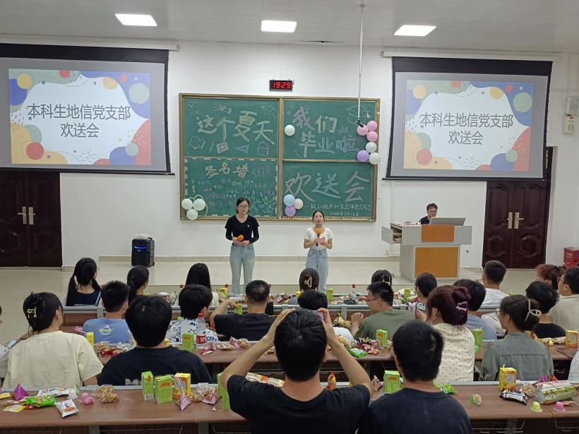 6月16日,本科生地信党支部在中文成人网 武鸣校区地源楼B107教室召开本科生地信党支部2024届毕业生党员欢送会。活动由綦文嘉和韦妙茵同志主持,全体党员参会。