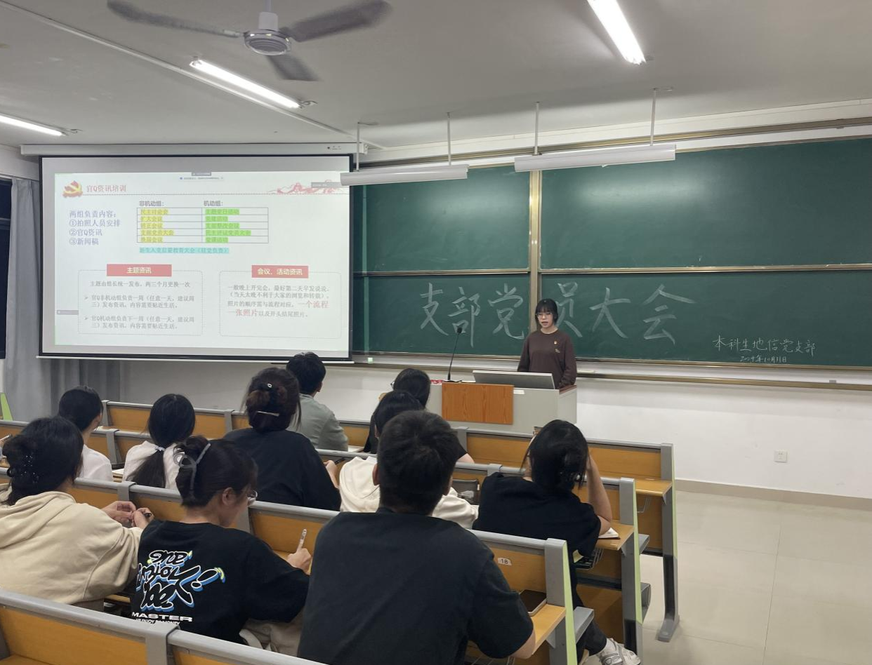 2024年10月31日,中文成人网 本科生地信党支部在中文成人网 武鸣校区实验楼2-A201召开支部党员大会,会议由支部宣传委员方家鑫同志主持,全体党员参会。