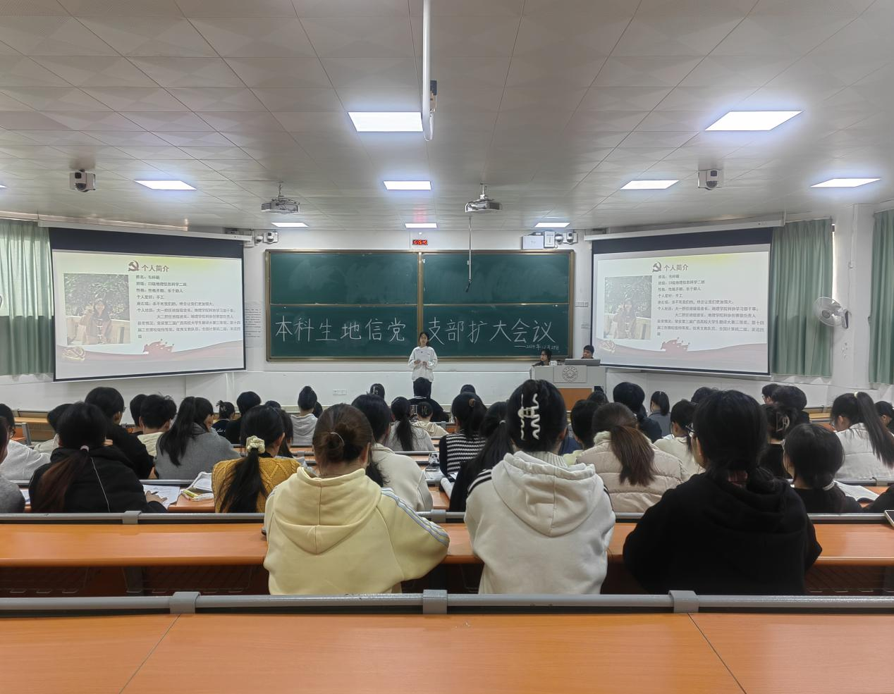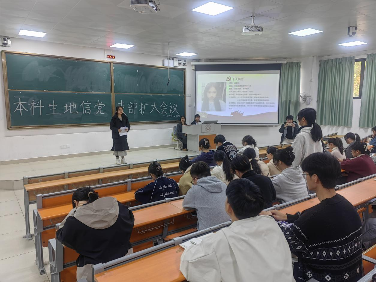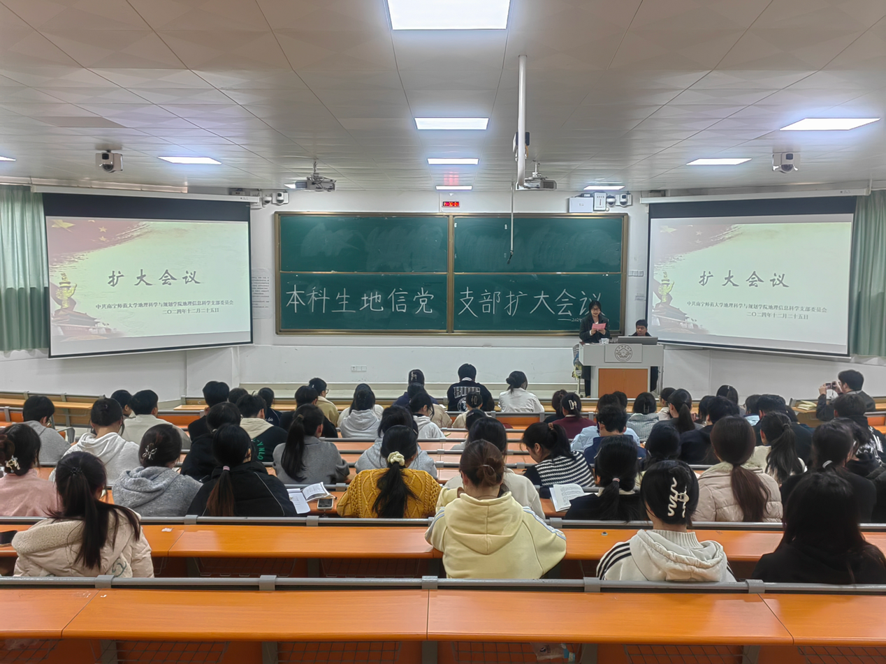 12月25日,中文成人网 本科生地信党支部于中文成人网 武鸣校区1号教学楼115教室召开扩大会议暨支部党员大会。本次会议由覃玉雯同志主持,支部全体党员、发展对象以及各班积极分子共同参会。