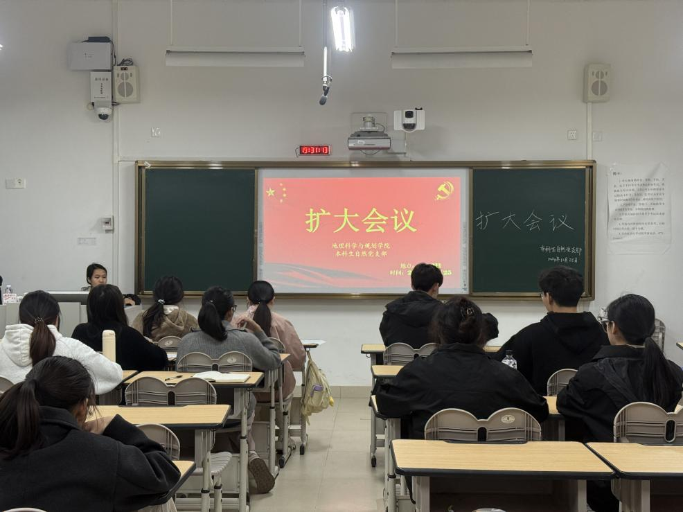 2024年12月25日,中文成人网 本科生自然党支部在武鸣校区1号教学楼211教室召开扩大会议。本次会议由党支部书记黄珊珊主持,全体党支部成员共同参与。