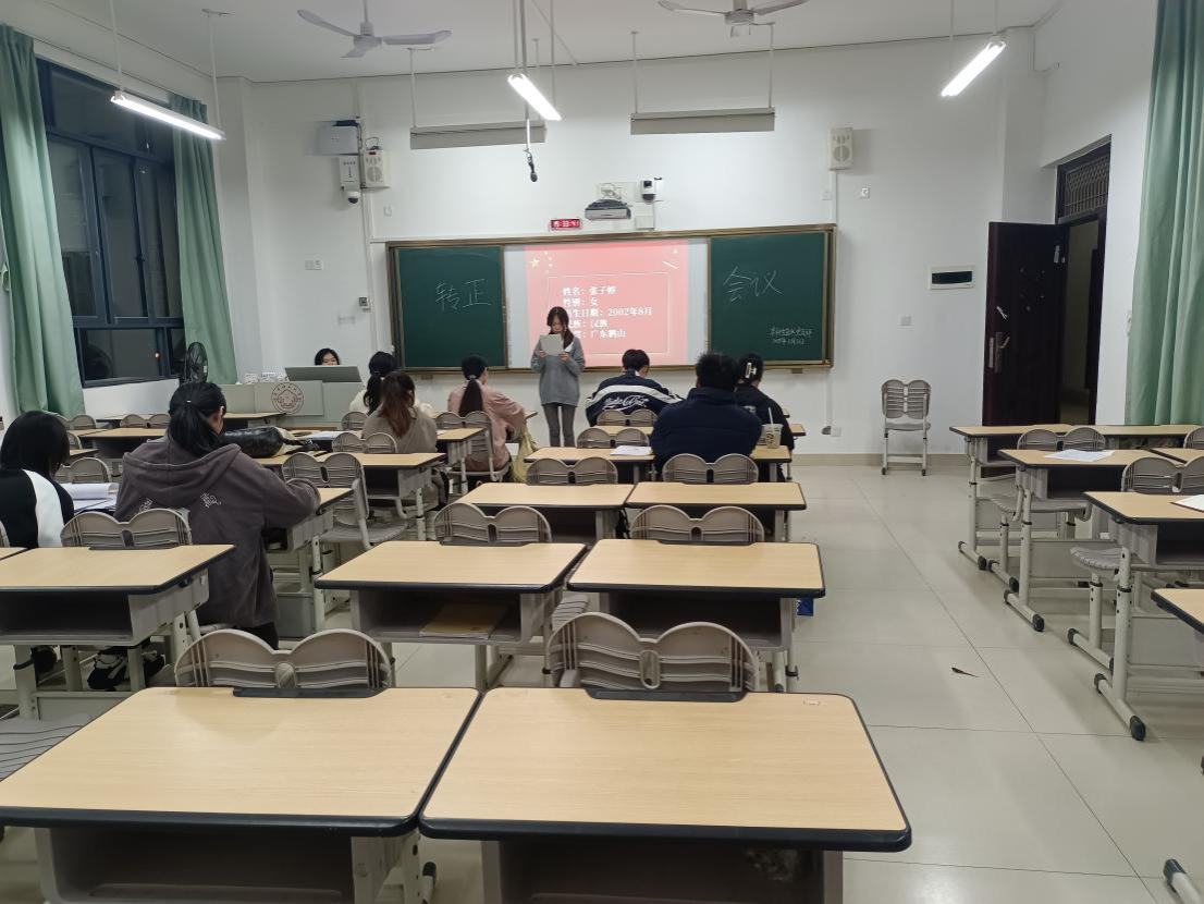 2025年1月3日,中文成人网 本科生自然党支部在武鸣校区一号教学楼206教室召开预备党员转正会议。本次会议由王梓阳同志主持,全体党员共同参会。