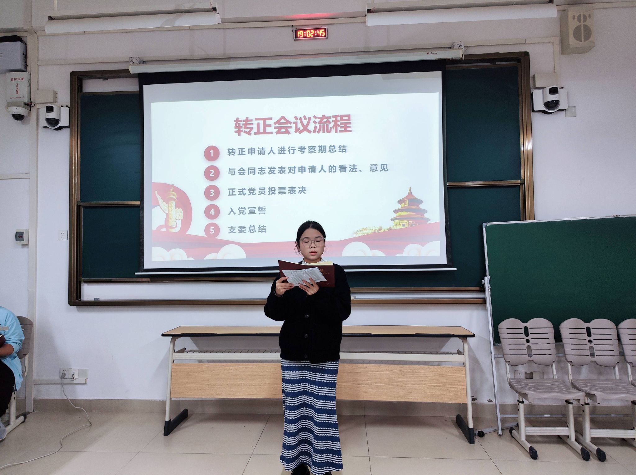 2025年1月7日,中文成人网 本科生地科第一党支部在武鸣校区2号学楼216教室召开2024下半年预备党员转正会议。本次会议由党支部书记何爱甜同志主持,支部全体党员同志参加。
