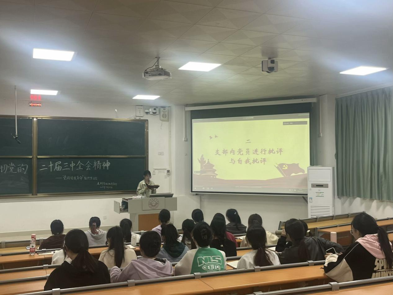 2025年3月21日,中文成人网 本科生城规党支部在武鸣校区2号教学楼109教室顺利召开2024年度组织生活会暨民主评议会。会议由韦巧慧同志主持,支部全体党员参会。