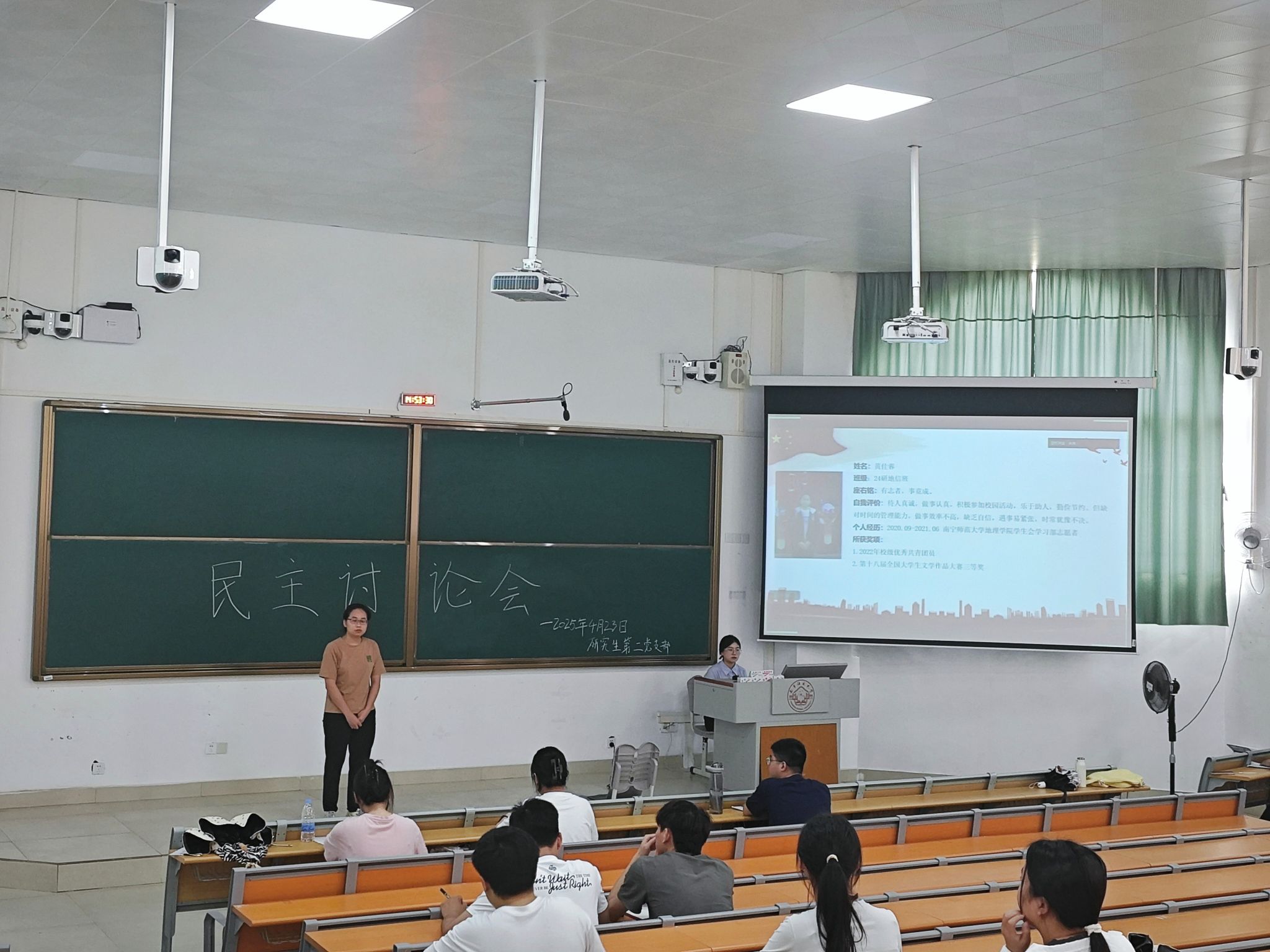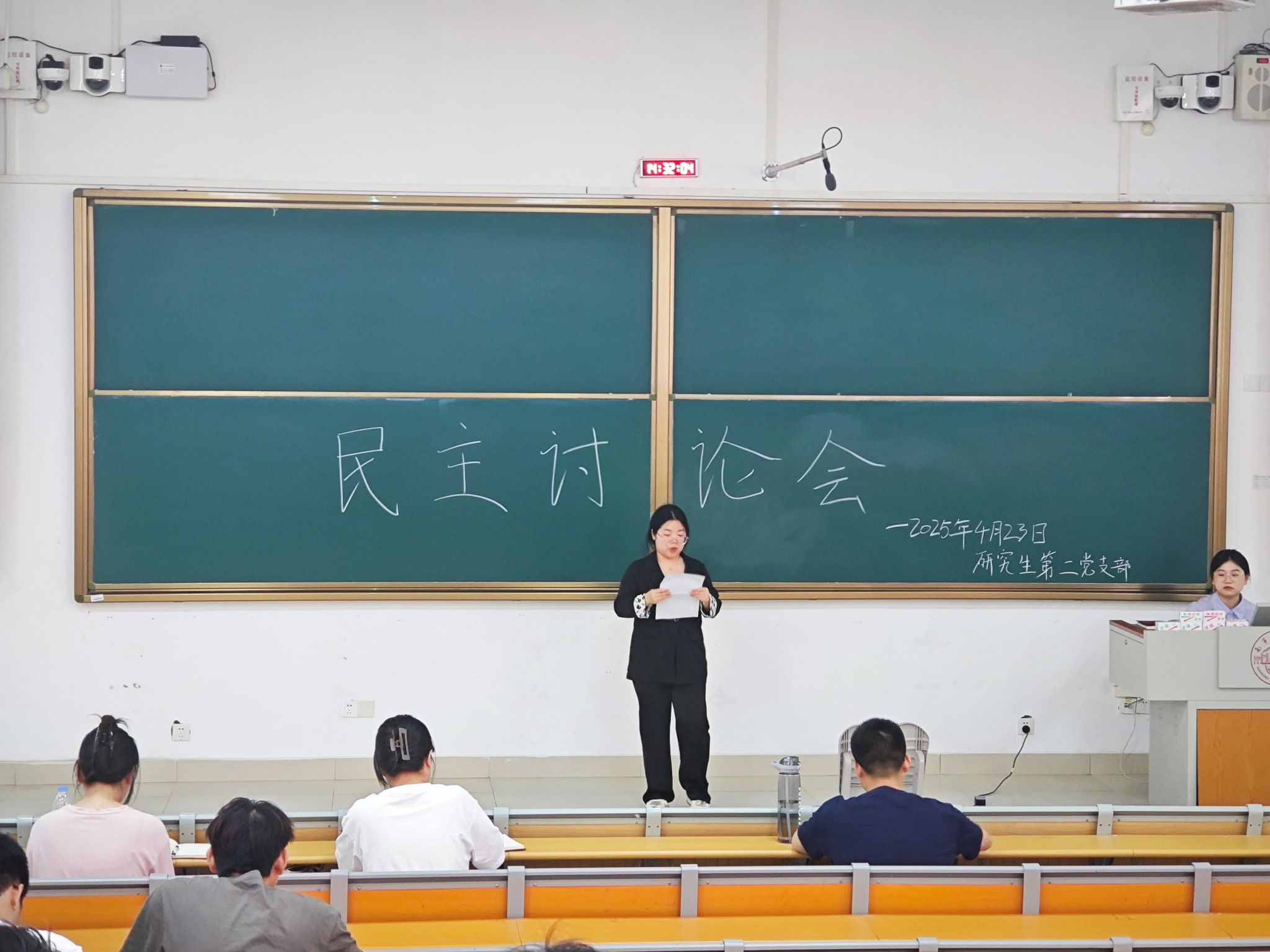 4月23日,中文成人网 地理学研究生第二党支部在武鸣校区1号教学楼215教室成功开展民主讨论会,就党湛皓等6名积极分子入党问题展开深入评议,充分发扬党内民主,严把党员发展“入口关”。 会议由支部副书记龙璐瑶同志主持,全体支部成员共同参与。