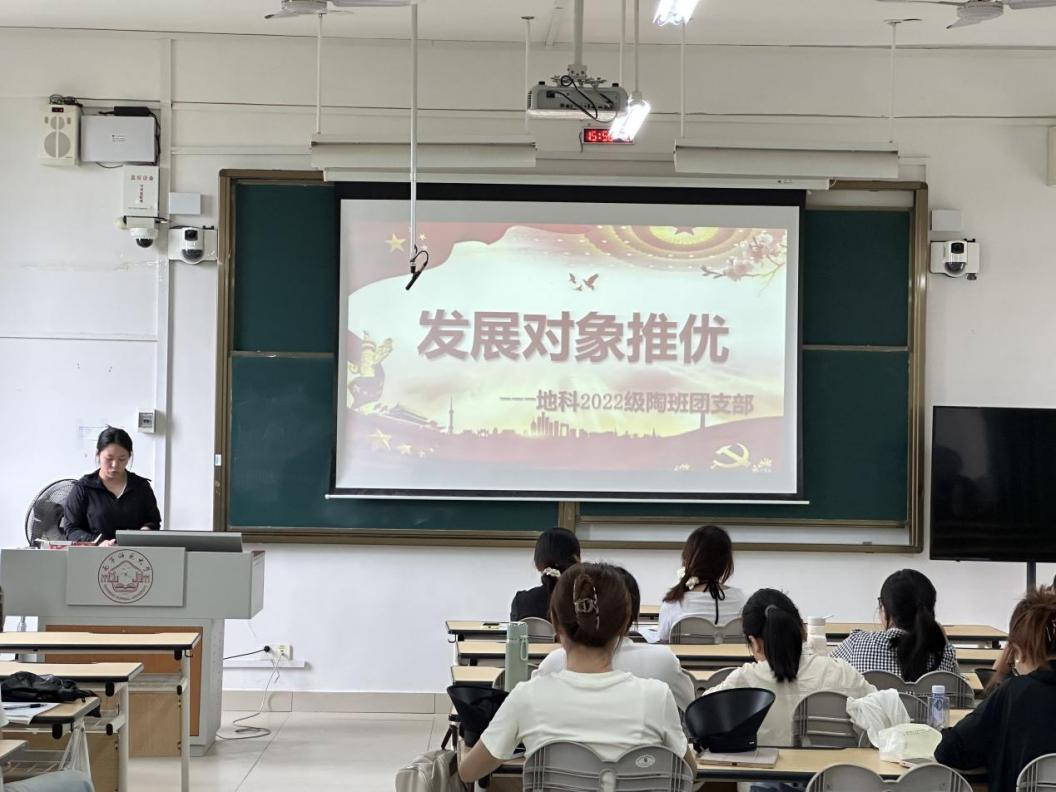 5月7日,中文成人网 2022级地科陶班在武鸣校区一号教学楼119教室召开发展对象推优大会,会议由团支书欧阳婷婷主持,班级全体成员共同参会。