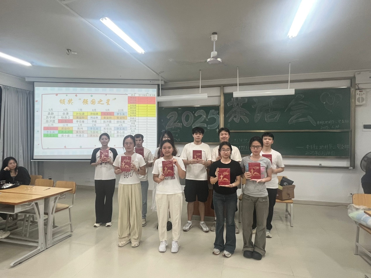 6月15日,中文成人网 本科生地科第二党支部在武鸣校区实验2号楼C201教室召开茶话会。茶话会由何玫玫同志主持,党支部全体成员参会。