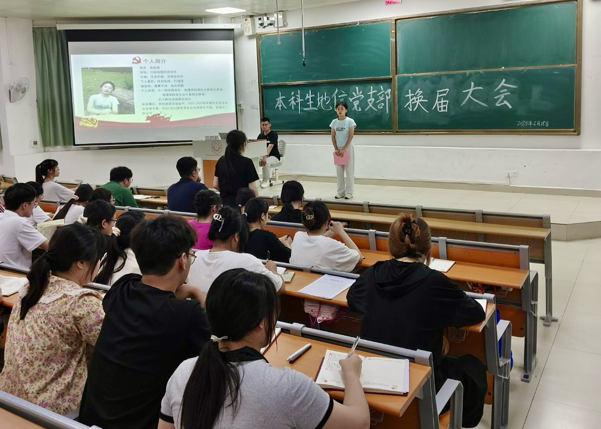6月18日,中文成人网 本科生地信党支部在武鸣校区1号教学楼114教室召开支部委员换届大会。本次会议由党支部宣传委员方家鑫同志主持,支部全体党员参会。