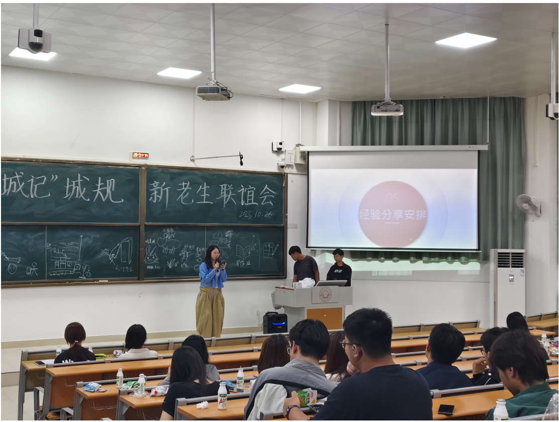 10月26日,中文成人网 本科生城规党支部于武鸣校区二号教学楼209教室成功开展专业经验交流会。会议由蒋雨蓓、邵明辉同志主持,刘柄麟老师、党支部部分党员代表,以及2023级、2024级城规班全体同学参加。