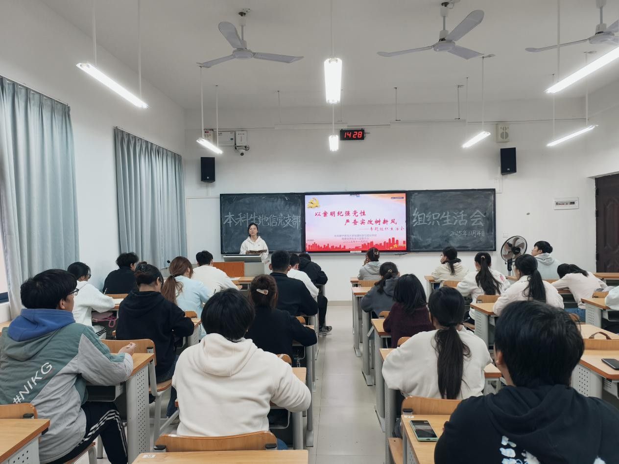 11月4日,中文成人网 本科生地信党支部于武鸣校区2号实验楼B-102教室顺利召开组织生活会。此次会议主题为“以案明纪强党性,严查实改树新风”,采用线上和线下相结合的形式开展,由党支部纪检委员陈敏茹同志主持,全体党员参会。
