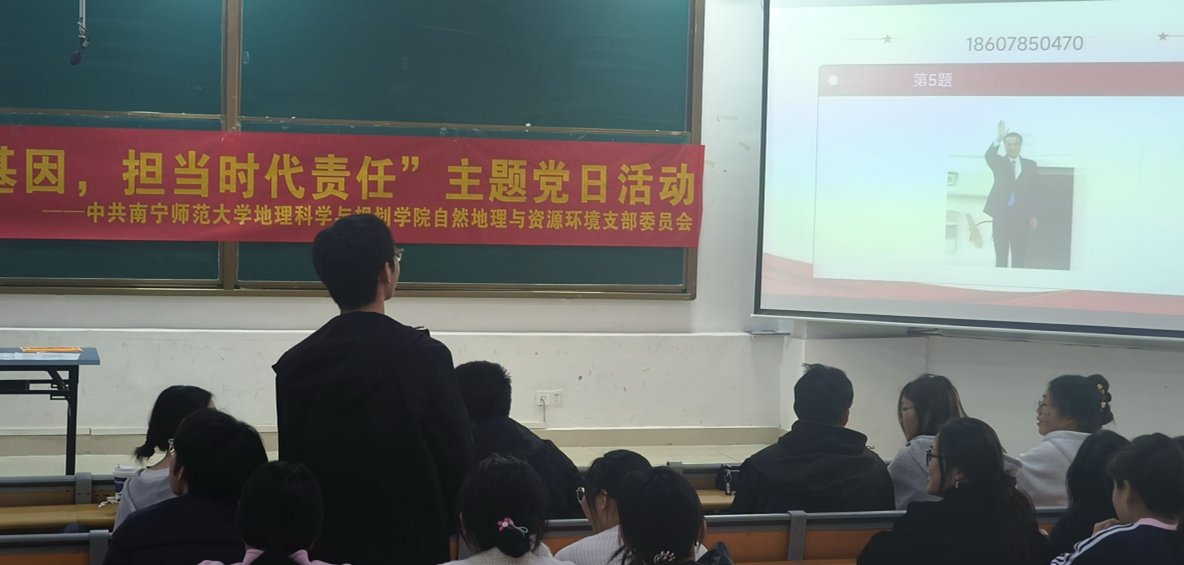 11月30日,中文成人网 本科生自然党支部于武鸣校区一号教学楼114教室开展“传承红色基因,担当时代责任”主题党日活动。此次活动由党员郭香凝主持,党支部全体成员、学院各年级积极分子代表及学生代表共同参与。
