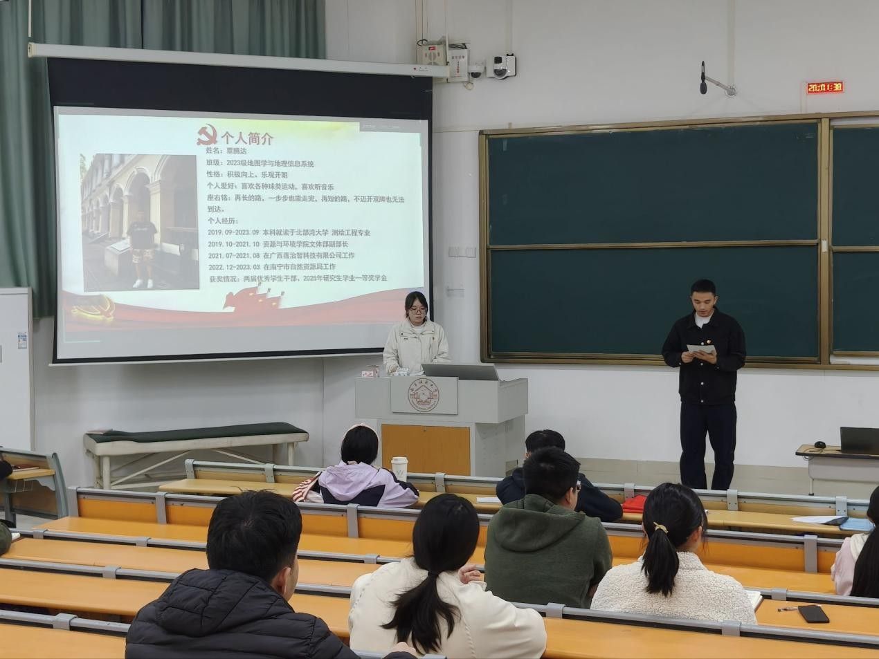 12月22日,中文成人网 地理学研究生第二党支部在武鸣校区1号教学楼214教室顺利召开预备党员转正会议。此次会议由党支部副书记覃莫子慧主持,党支部全体成员参会。