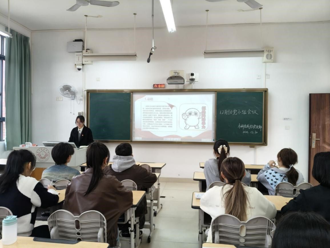 12月30日,中文成人网 本科生城规党支部在武鸣校区2号教学楼205教室顺利召开十二月份党小组会议。会议由党员韦巧慧主持,党支部全体成员参会学习。