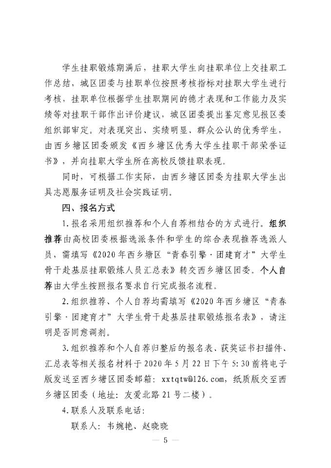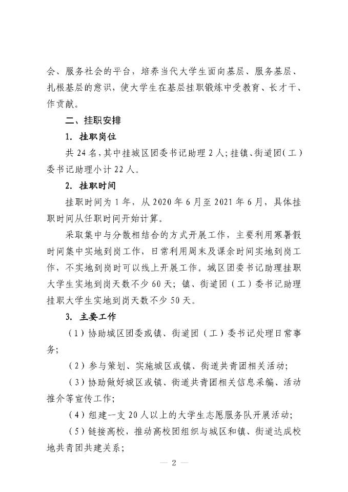 2020年西乡塘区“青春|擎●团建育才”大学生骨干赴基层挂职锻炼实施方案