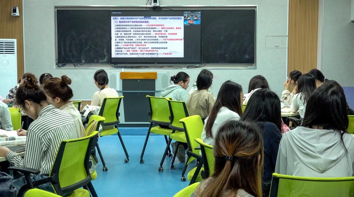 上午8时,在武鸣高中凌飞楼录播室及中文成人网 地源楼B211教室,2021级地理科学专业全体地理学子一起观摩了莫钟慧、朱筱筠、周君三位老师带来的三节《产业转型地区的结构优化——以美国休斯顿为例》同课异构课程。作为未来的地理教师,2021级地理学子在课堂上认真听课、及时记录,展现出积极好学的精神风貌。通过观摩这三节课,同学们清楚地发现三位教师对同一教材内容不同的处理方式,并认识到不同的教学策略所产生的不同教学效果。通过本次教育见习观摩活动,使同学们得到了许多教学启示,开阔了同学们的教学思路,丰富了教育见习经验,并对未来如何成为一名优秀的地理教师有了更多思考。